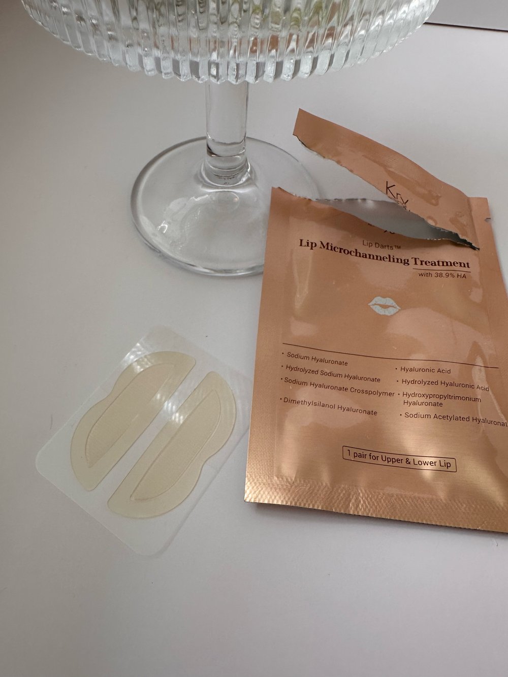 KrX Lip Darts are a microchanneling treatment for the lips. Each patch contains active ingredients which are suspended within soluble spears. When applied to the lips, the microneedle-like spears create microchannels which increase absorption of ingredients.